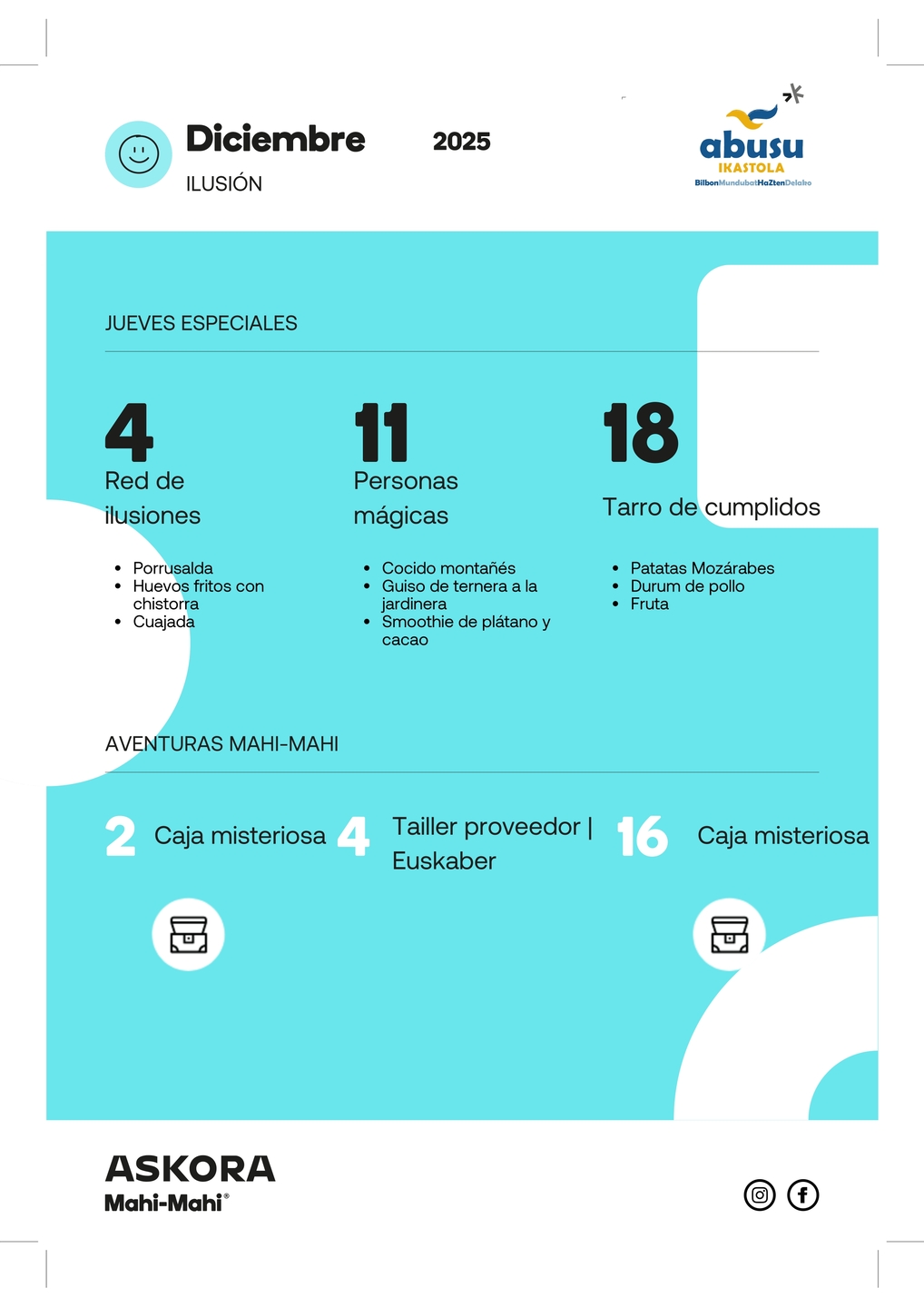 Etor zaitez gurekin momentu hauek deskubritzera — elkarrekin egingo dugu keinu txiki bakoitzak, urte amaiera honetan, ilusioa ekar dezala. Begira ezazu hilabete honetako agenda eta aukeratu zein jardueratan parte hartu nahi duzun!
