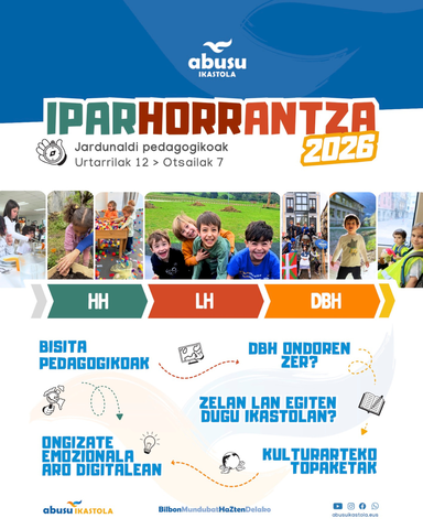Guztia prest dugu Iparhorrantza 2026 ospatzeko! Aurten ere, gure hezkuntza-proiektua eta Ikastolaren eguneroko bizitza hurbiletik ezagutzeko programa zabala prestatu dugu gure familientzat baita interesatuta dauden familia berrientzat ere.